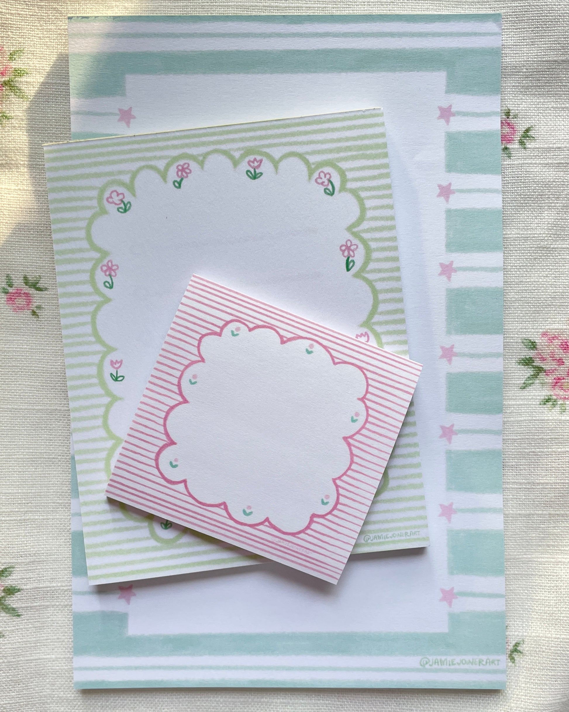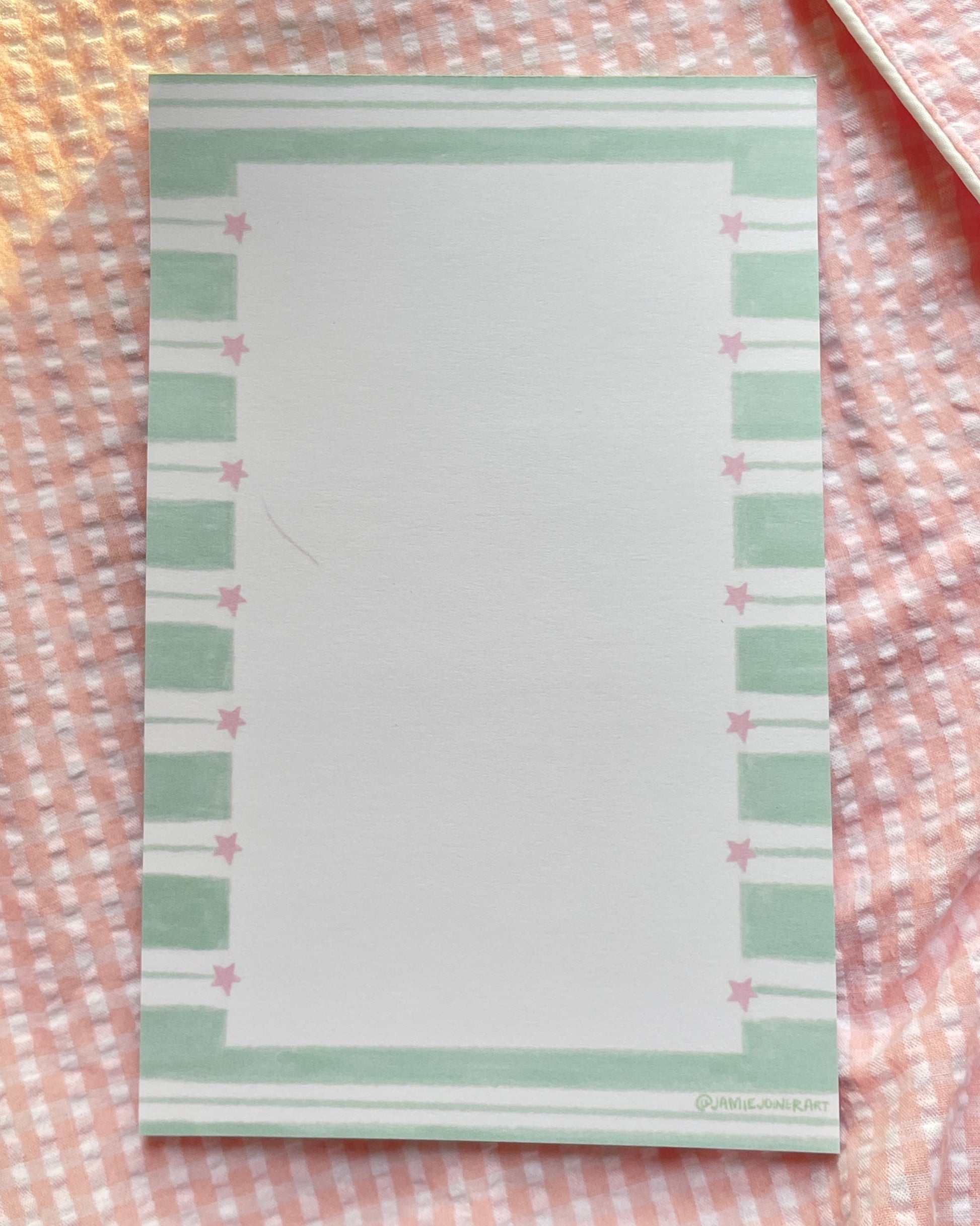 Add a splash of whimsy to your day with this cute medium notepad! Featuring soft seafoam stripes and playful pink stars, it’s the perfect blend of sweet and stylish. With 50 sheets and a convenient 8.5 x 5.5 inch size, it’s just right for lists, notes, and everyday inspiration.