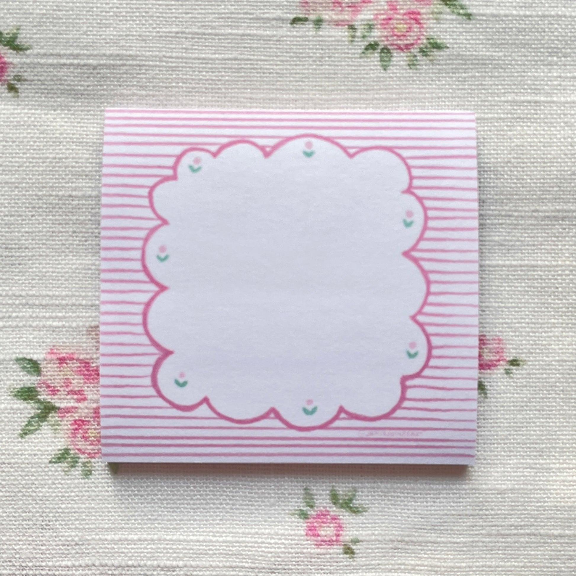 Jot down your thoughts, reminders, or little love notes on this charming pink striped floral sticky note pad. With 50 sheets of cuteness, each note brings a touch of whimsy to your day. Perfect for planners, desks, or anywhere you need a pop of floral fun!